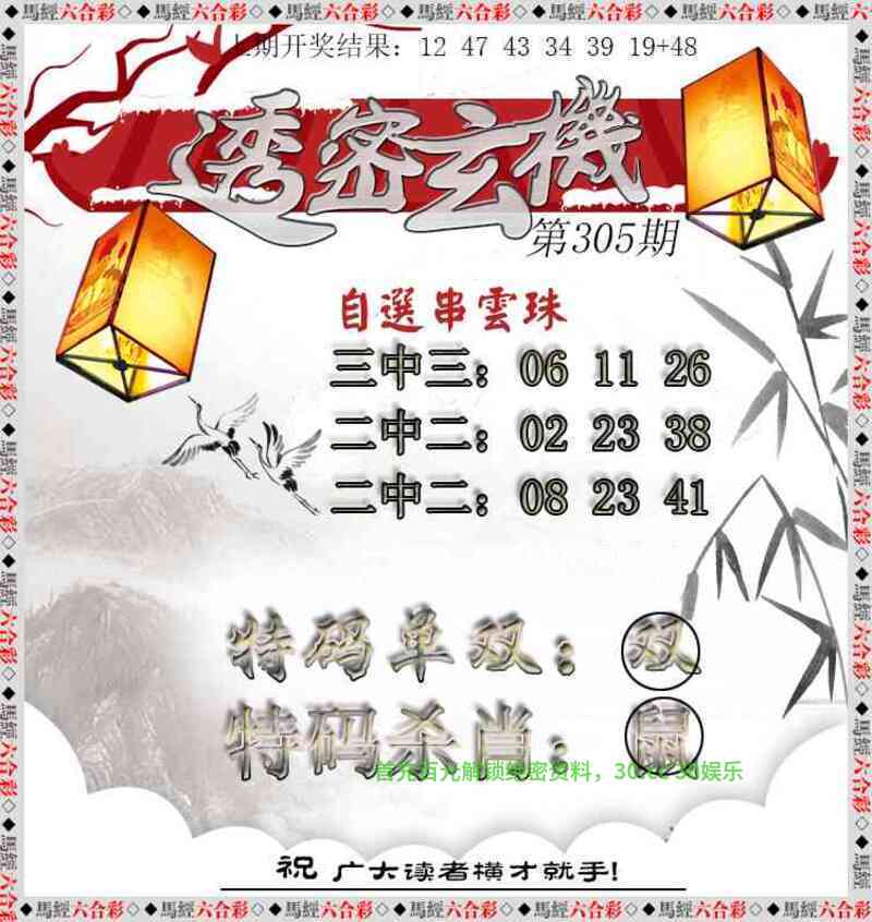 300期:今期鸡马猪出特,一别朱门三四春开:虎40准